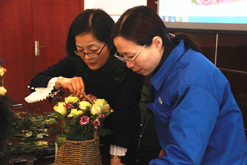 媧誨姩浼婂錛屼笓涓氳姳鑹鴻佸笀涓哄コ鑱屽伐浠鎺堜簡鎻掕姳鑹烘湳鐨勫熀鏈煡璇嗭紝閲嶇偣璁茶В浜嗘彃鑺辯殑閫犲瀷銆佽壊褰╁簲鐢ㄨ鐐癸紝鐜板満婕旂ず浜嗘彃鑺辯殑鎶宸с傚湪鑰佸笀紺鴻寖璁茶В涓嬶紝澶у鍏磋嚧鐩庣劧鐨勮窡闅忕潃鑰佸笀鐨勬楠わ紝鏁寸悊鑺辨湹銆佷慨鍓姳鏋濓紝鍒涗綔鑷繁鐨勪綔鍝併?/font>