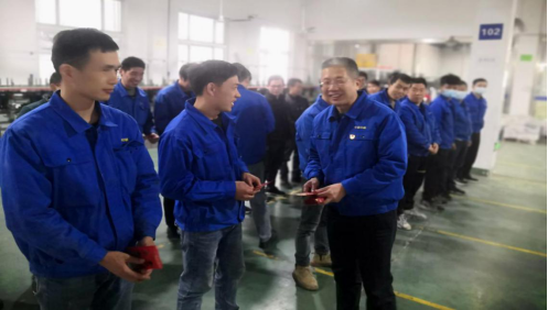 寮宸ョ涓澶╋紝鍏徃钁d簨闀垮啹姘寸瓑涓琛岄瀵間負琛ㄨ揪瀵規寜鏃惰繑宀椾竴綰垮鍦板憳宸ョ殑鎱伴棶錛屼粬浠潵鍒頒簡鐢熶駭鐜板満錛屽皢涓涓釜綰㈠寘閫佸埌涓綰垮鍦板憳宸ユ墜涓娿?/span>